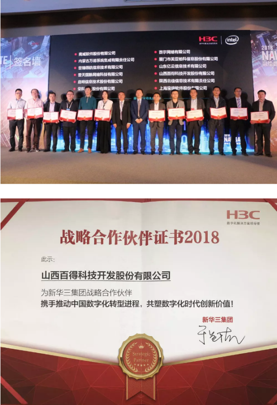 本次峰會(huì )上,百得科技成為山西唯一一家與新華三集團簽約的戰略合作伙伴,意在攜手推動(dòng)中國數字化轉型進(jìn)程,共塑數字化時(shí)代創(chuàng )新價(jià)值!